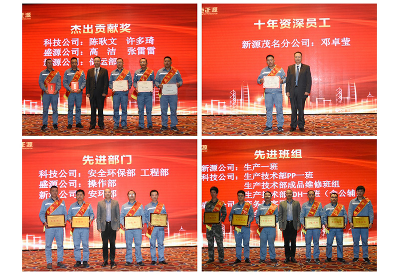 黨總支書記張寶業在會上宣讀了公司2018年度先進集體和先進員工的表彰決定。本次年度表彰共設“杰出貢獻獎”、“先進部門”、“先進班組”、“優秀部門經理”、“優秀管理人員”、“優秀員工”、“工程建設標兵”、“HSE先進個人”、“優秀學員”、“十年資深員工榮譽獎”等10個獎項,共有94個先進集體和先進員工獲得通報表彰。公司領導分別為獲獎集體及個人頒發獲獎證書,感謝他們過去一年的努力拼搏,為公司持續健康發展做出了積極貢獻。