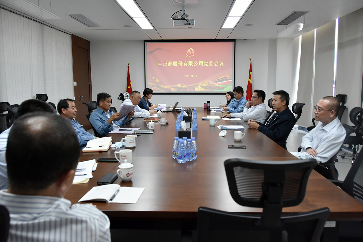 11月16日,巨正源公司召開黨委會(huì),深入學(xué)習(xí)貫徹十九屆六中全會(huì)精神。公司黨委書記、董事長(zhǎng)石新琦主持會(huì)議。