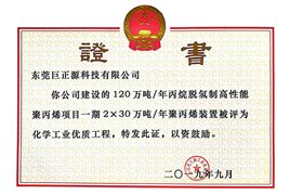• 巨正源聚丙烯項目一期工程獲評“化學工業優質工程”