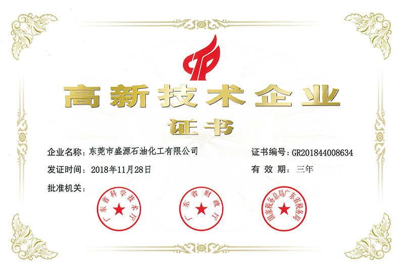 • 國家高新技術企業(盛源石化)點擊查看大圖