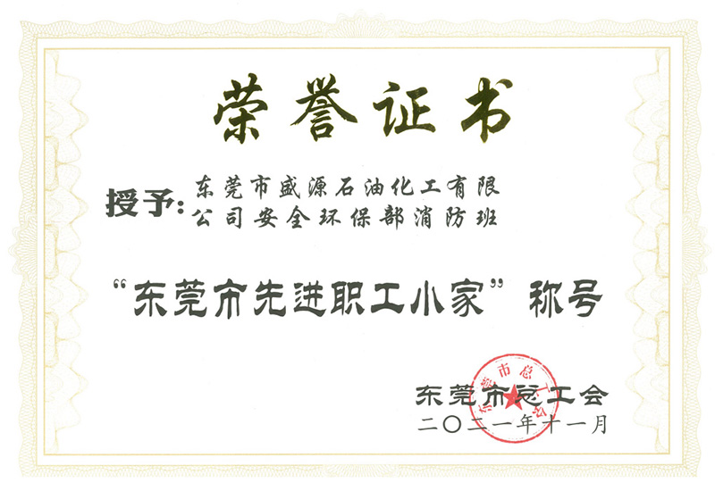近日,巨正源所屬盛源石化公司安全環(huán)保部消防班被東莞市總工會(huì)授予“東莞市先進(jìn)職工小家”榮譽(yù)稱號。